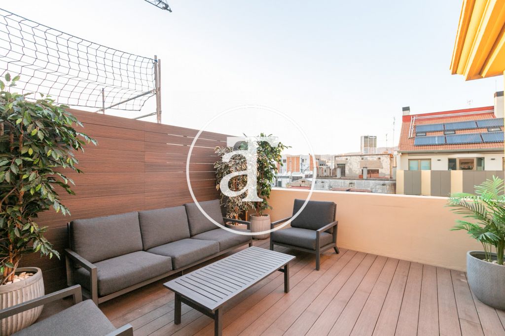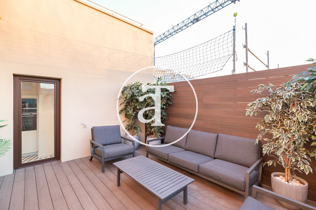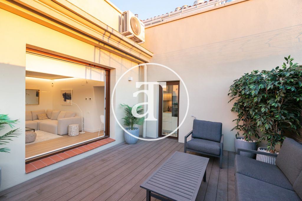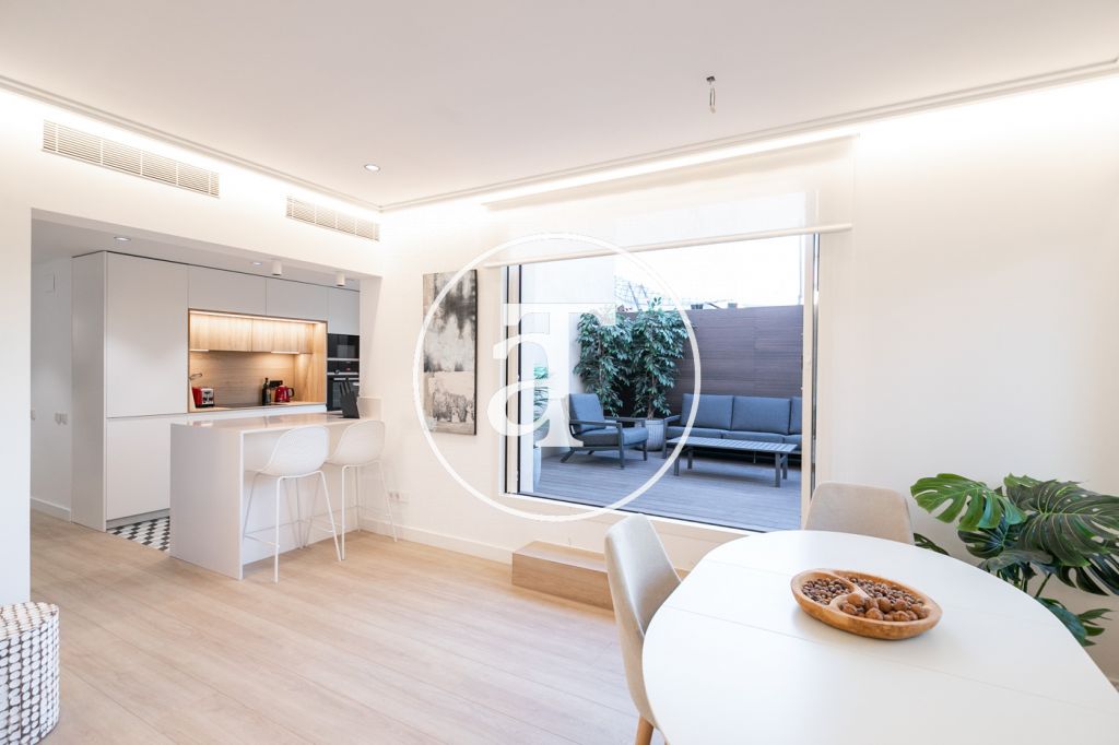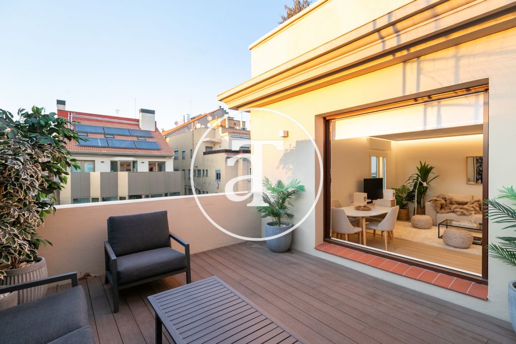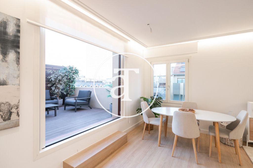 Ático de alquiler temporal de 2 habitaciones y terraza exterior a pasos de Paseo de Gracia