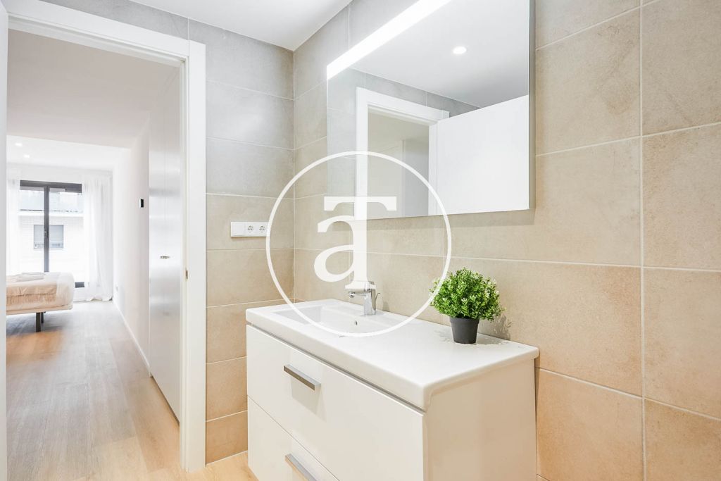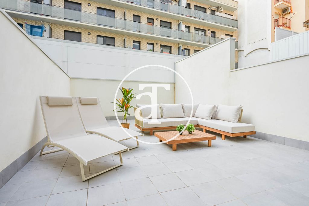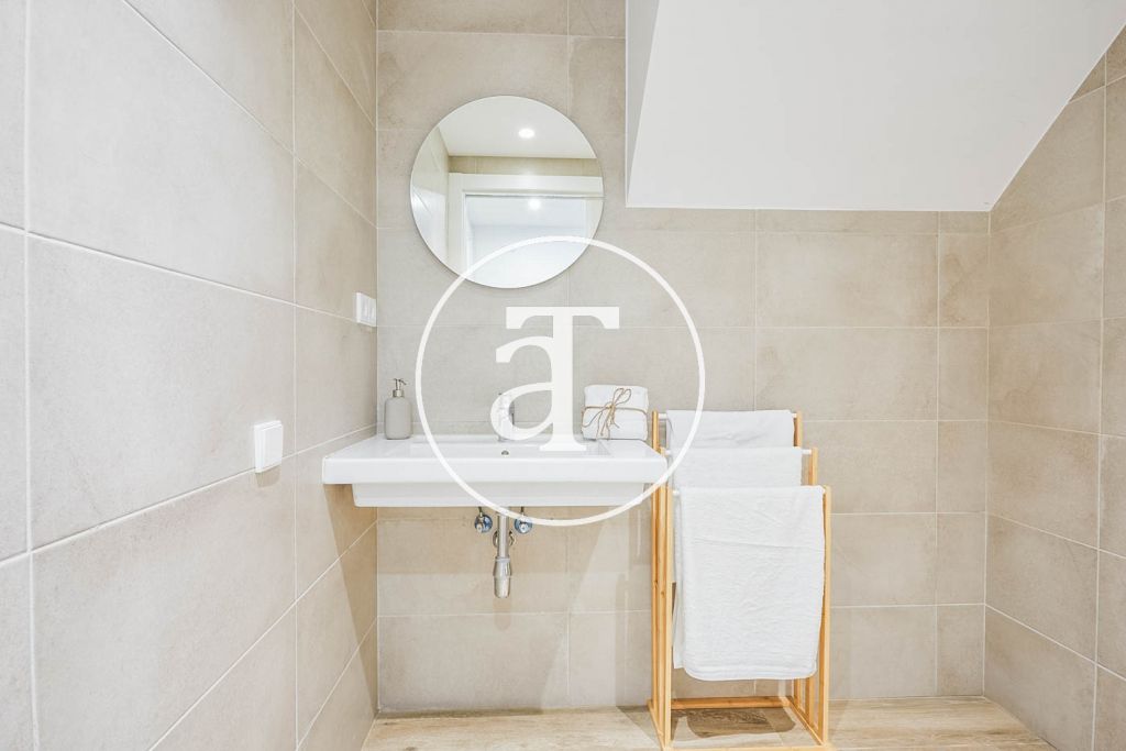 En un área residencial encontrarás este hermoso y amplio dúplex completamente equipado para tu estancia en Barcelona.