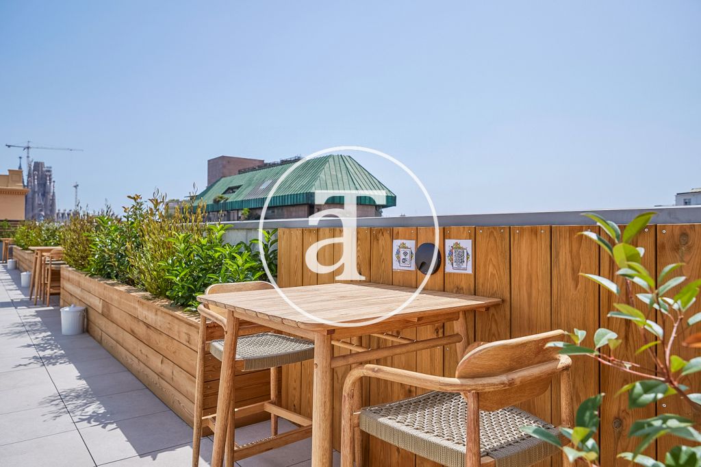 This is one of the best areas in Barcelona, with all amenities such as supermarkets, restaurants, bars, cafes, etc. It is also located near major tourist attractions such as the impressive works of architect Gaudí, Casa Pedrera and Casa Batlló.