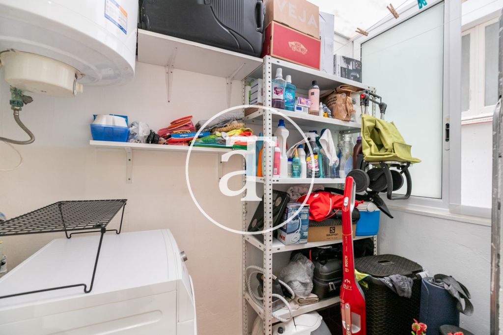 This apartment offers a comfortable and well-used space in a quiet area of the Sant Andreu neighborhood. The living room is cozy and is equipped with a comfortable sofa, TV and a dining table for four people, ideal for both meals and sharing moments. Nearby, an area with a desk and chair provides a perfect corner to study or work in peace and quiet.