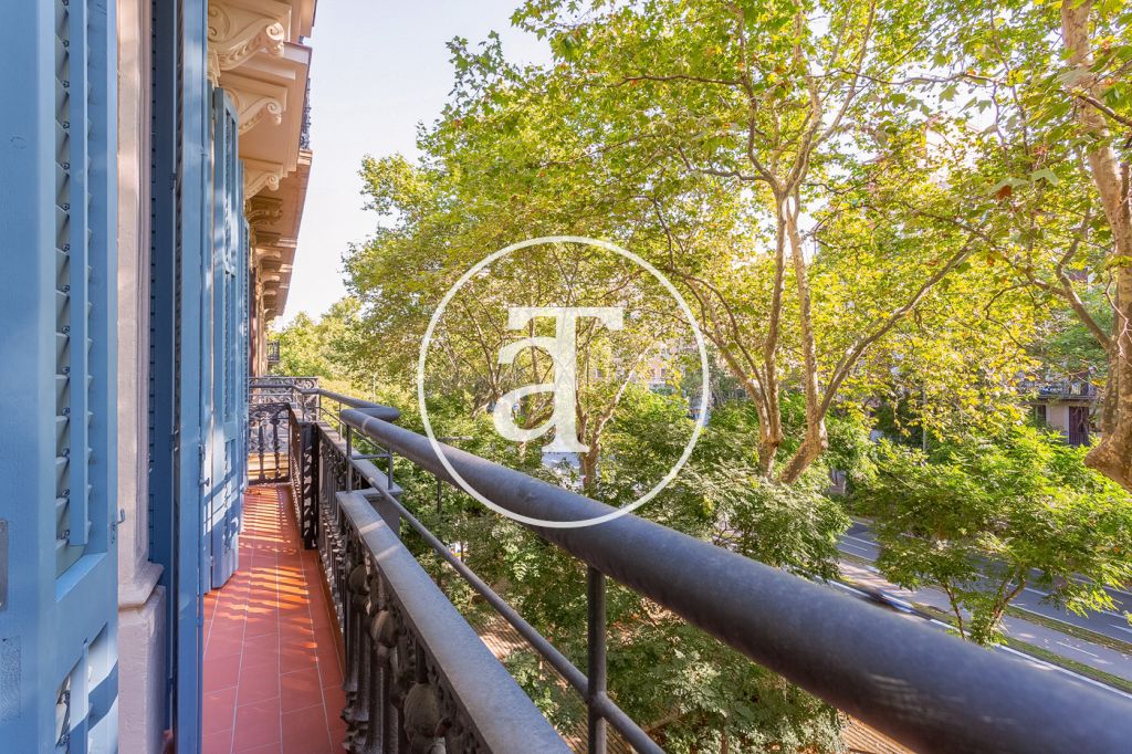 Un long balcon s'étendant sur toute la façade permet de profiter de la vue sur la magnifique promenade Sant Joan depuis le salon et la chambre principale.