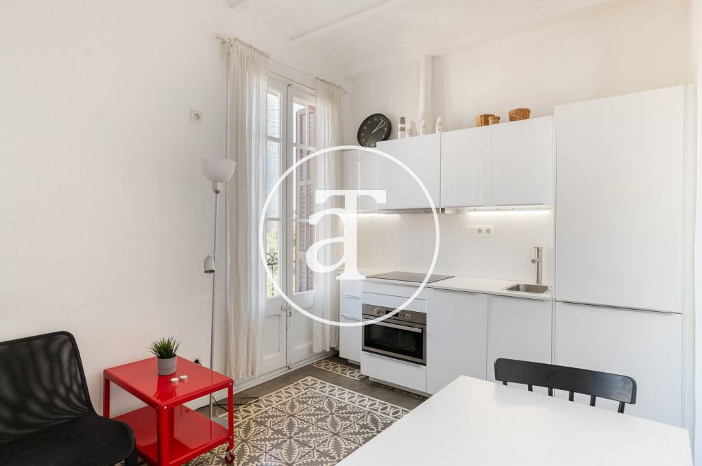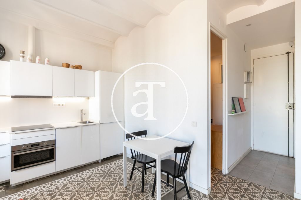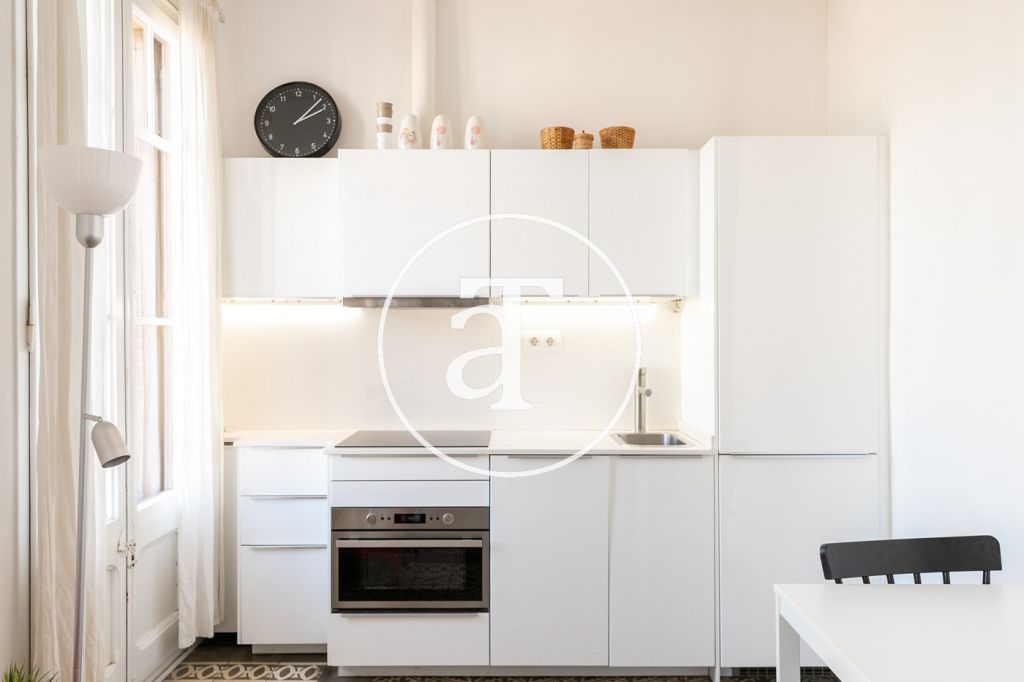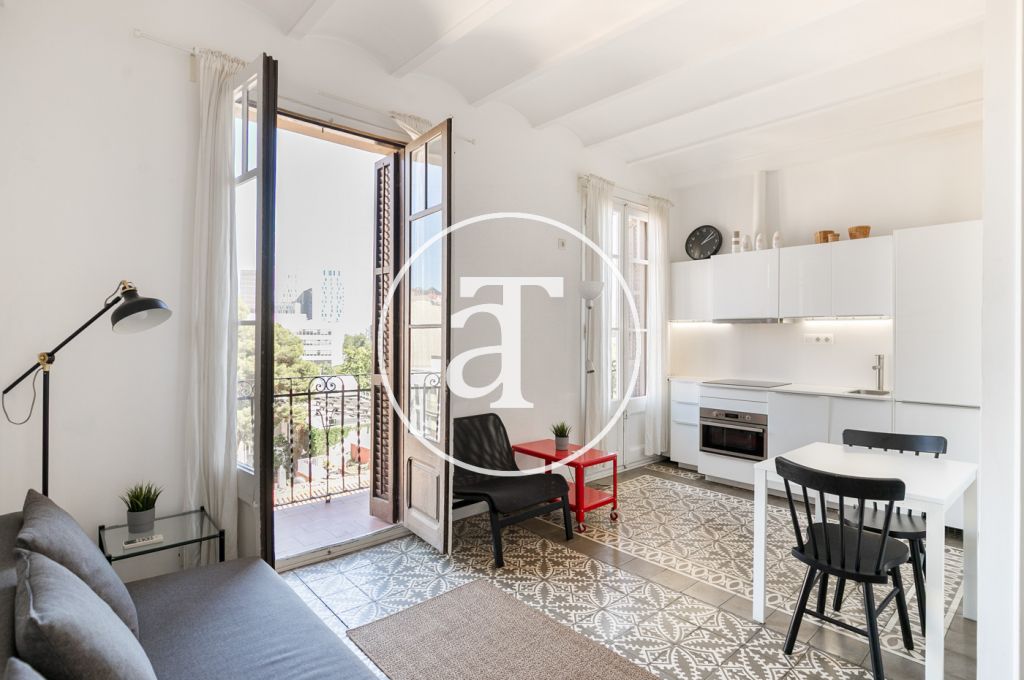 Ce magnifique appartement rénové, disponible à la location temporaire dans le quartier de Clot, est meublé et offre une vue incroyable sur la tour Glòries. Il est situé dans un quartier très calme, à proximité de la station de métro Glòries.