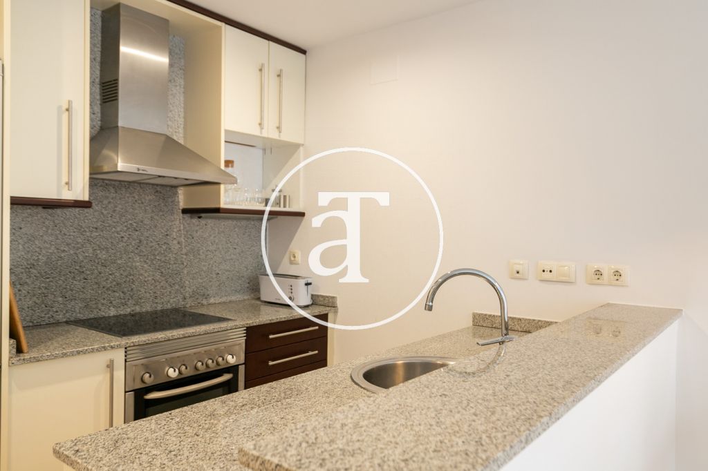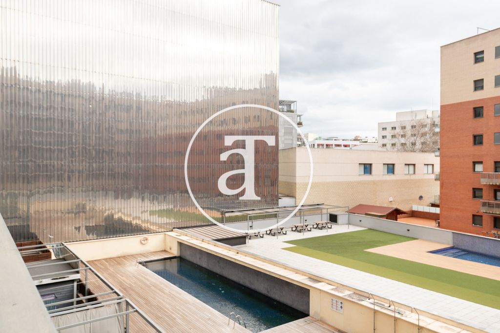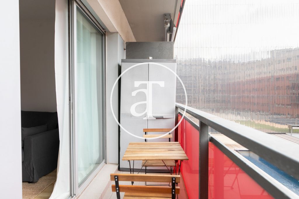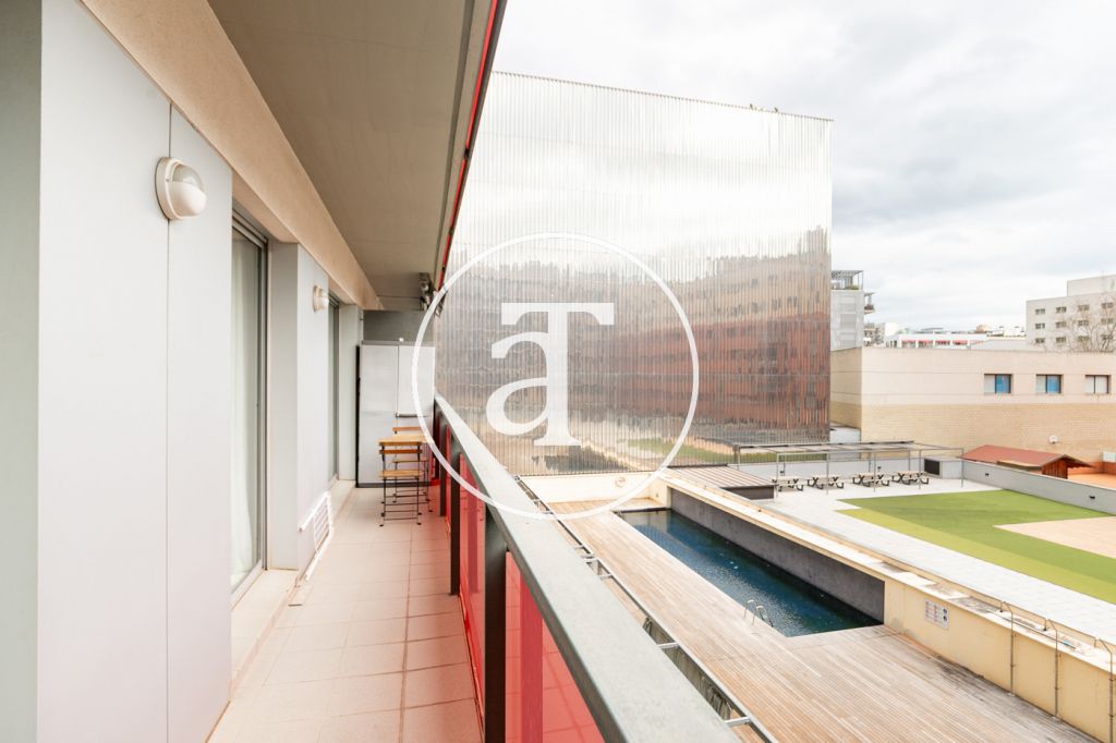 Appartement en location temporaire avec 2 chambres et 1 salle de bain, terrasse et piscine commune à Poblenou