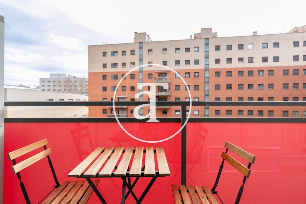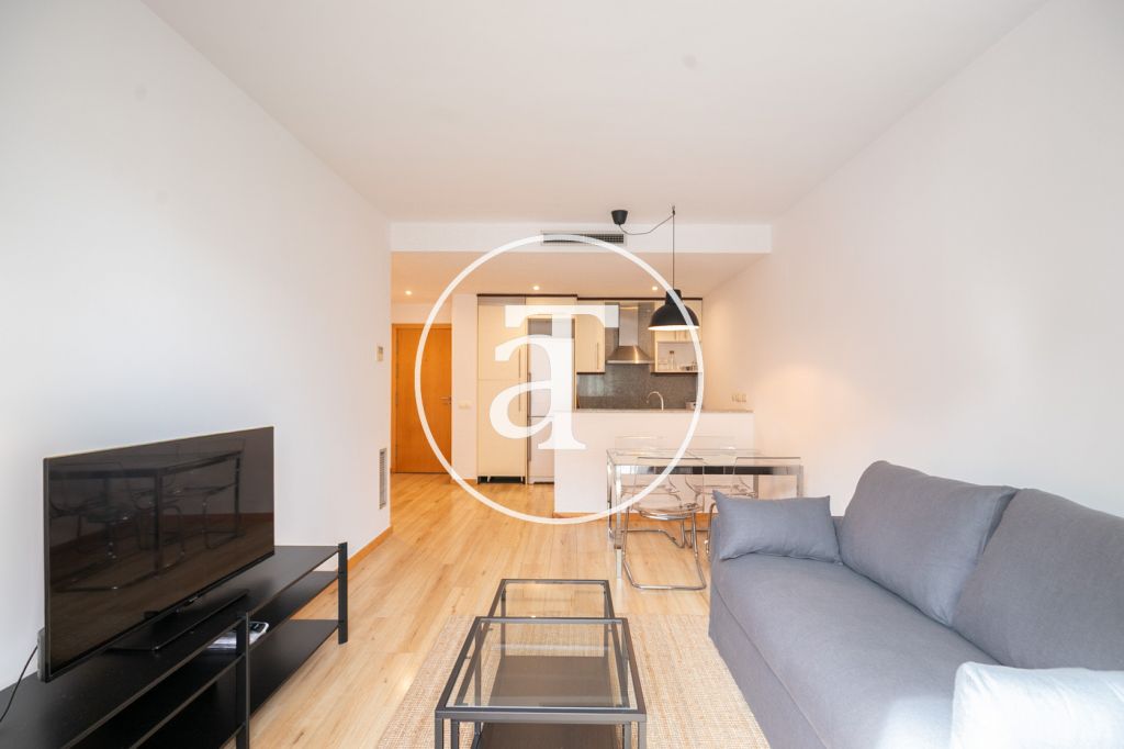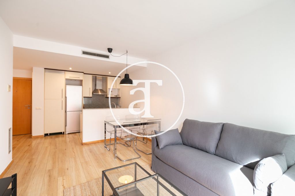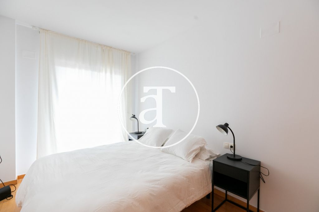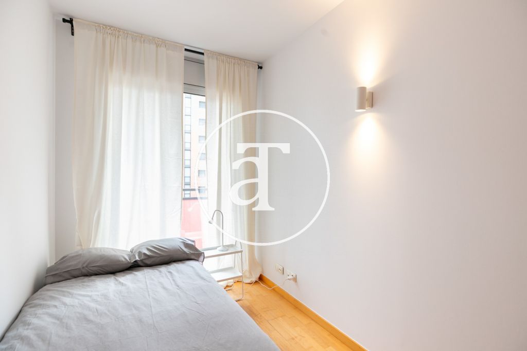 Appartement en location temporaire avec 2 chambres et 1 salle de bain, terrasse et piscine commune à Poblenou